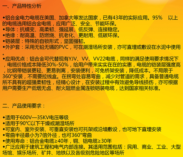 鋁合金電纜:鋁合金電纜ZR-YJLHV 瀏覽:3649